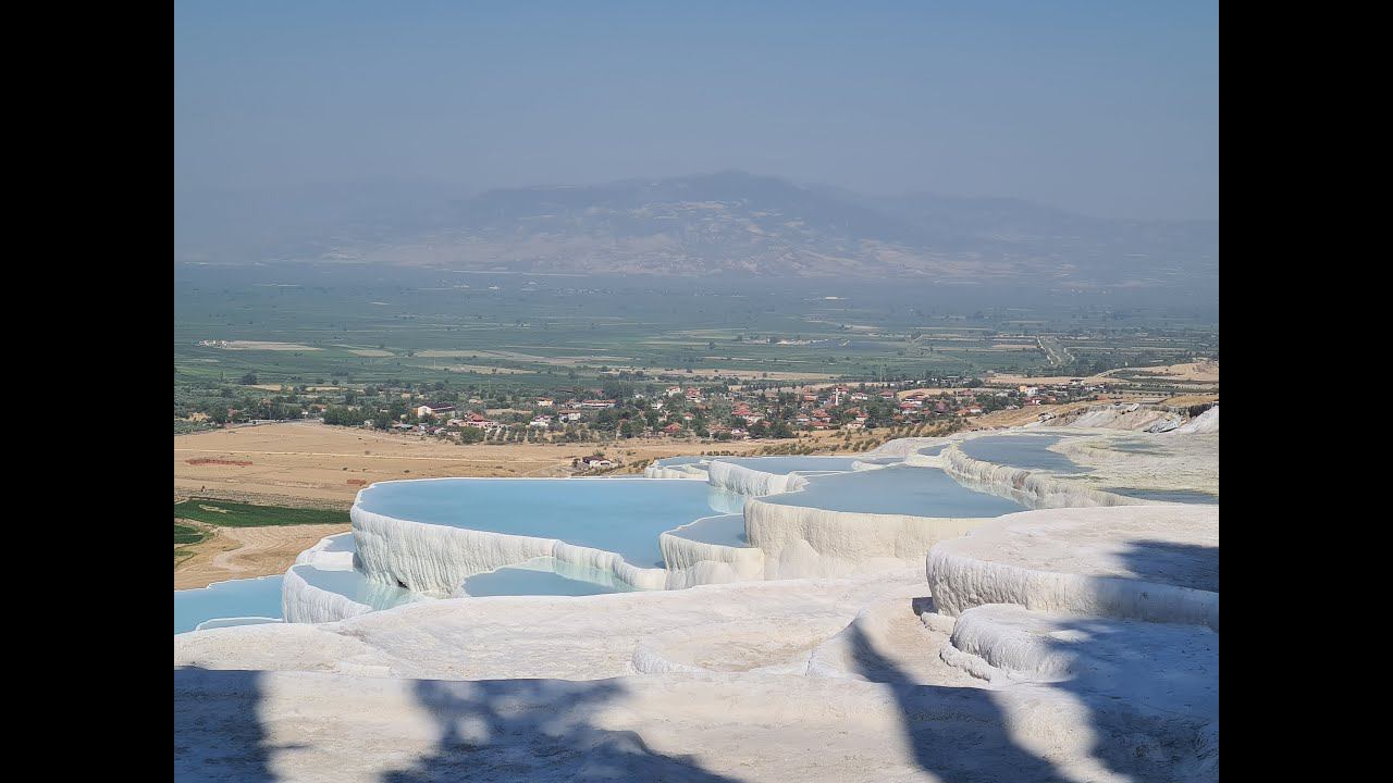 Памуккале с воздуха и на земле. Pamukkale (Türkiye) from the air and on the ground.