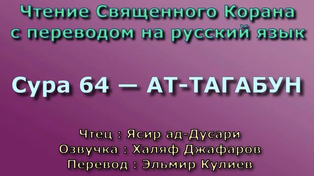 Чтение^Озвучка - Корана Чтец: Ясир ад-Дусари Озвучка: Халяф Джафаров Перевод: Эльмир Кулиев Источник YouTube канал: " Священный Коран "