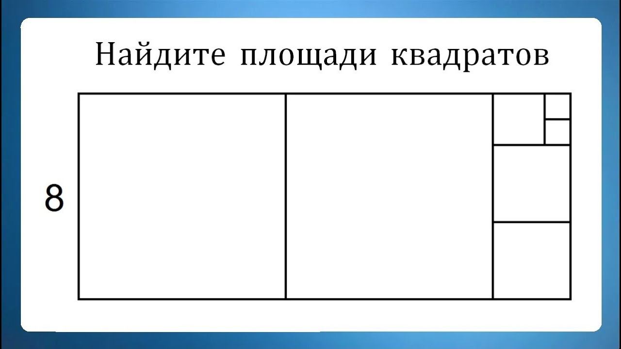 https://t.me/volkov_telegram На рисунке семь квадратов. Сторона самого большого равна 8 см. Найдите площади всех квадратов. Valery Volkov https://www.youtube.com/valeryvolkov Наш семейный канал: https://www.youtube.com/@arinablog Почта: uroki64@mail.ru