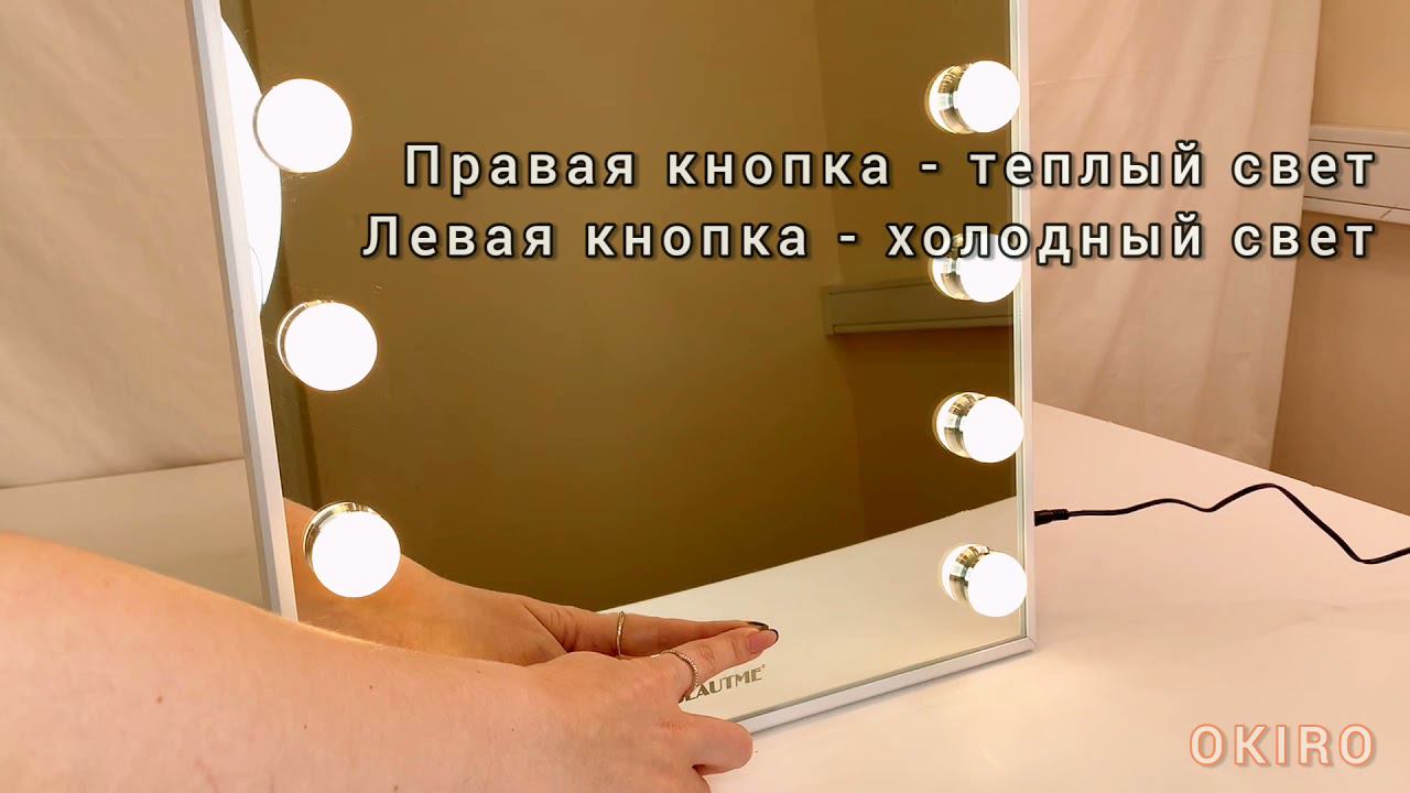 Гримерное зеркало L605V прекрасно впишется как в интерьер вашего дома, так и дополнит любое рабочее место. Его можно не только облокотить на поверхность, но и повесить на стену. Благодаря своим небольшим размерам - 50х40 см, гримерное зеркало не будет занимать много места и позволит вам расположить его практически везде. Размер поверхности зеркала - 48 х 38 см. По периметру в гримерное зеркало закреплены 15 лампочек. Диаметр одной лампочки - 3,5 см. В данном гримерном зеркале есть 2 температурных режима: холодный и теплый. На сенсорной панели расположены кнопки для регулировки температуры и яркости света. Переключение на обеих кнопках, также как и регулировка яркости. На правой - теплый свет, на левой холодный. При долгом зажатии рабочей кнопки можно регулировать яркость света. В комплекте находится сетевой шнур, инструменты, винтики и пробки для крепления зеркала на стену. Сам разъем для сетевого шнура находится сбоку зеркала. Питание от сети 220 вольт от евро-розетки. Характеристики настольного ГРИМЕРНОГО ЗЕРКАЛА L605V : Общий размер - 50х40 см, Размер зеркала - 48 х 38 см, Мощная диодная подсветка из 15-ти ламп. Сенсорное управление 2 кнопками Вес: 5 кг. Материал: алюминий, МДФ. Купить настольное гримерное зеркало L605V Вы сможете на сайте нашего интернет магазина! Гарантия качества! Быстрая и квалифицированная доставка (наши партнеры по Москве: Интеграл курьерская доставка, по России: CDEK)! Недорого и по приемлемой цене!