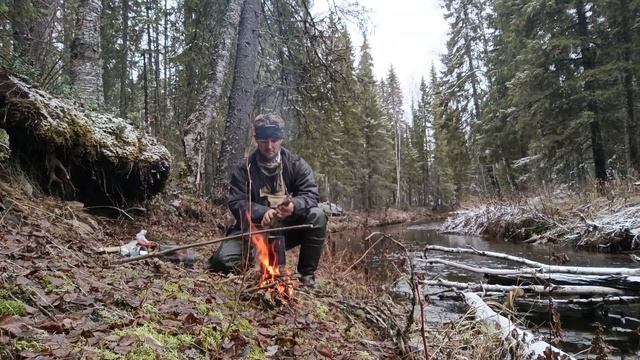 походил по лесу,Найда готова была лаять на каждую елку в надежде что там белка.Зарядил еще несколько капканов в новом месте.Сходил до старого избища,посмотрел в каком состоянии старый лабаз.Попил чаю у речки,нашел попутно чагу. Взял с собой в лес домашнюю тушенку из бобра,первый для меня опыт,получилось довольно таки вкусно)))