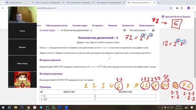 22 февраля 2025 • NlogN Advanced B - Факторизация числа. Разбор задач D, F-H