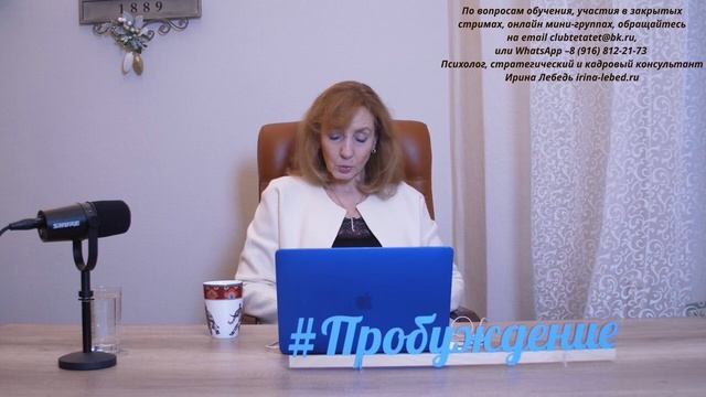 ➤ Ирина Лебедь - психолог, стратегический консультант. Опыт работы в области практической психологии – более 25 лет. ➤ Официальный сайт психолога Ирины Лебедь - http://www.irina-lebed.ru/ ➤ Видеосеминары Ирины Лебедь - http://www.irina-lebed.ru/obuchenie/ ✆ Как ещё можно с нами связаться: ✦Skype: irina.tetatet ✦Email: clubtetatet@bk.ru ✦WhatsApp: +7 (916) 812-21-73 ✦Telegram: https://t.me/masterskaya_probuzhdenie ✦Facebook: https://www.facebook.com/club.tetatet ✦ВК: https://vk.com/club38480683 ✦Twitter: https://twitter.com/Clubtetatet ✦ЖЖ: https://lirina.livejournal.com/ ✦YouTube канал: https://www.youtube.com/user/clubtetatet/featured ✒ По вопросам приобретения занятий и видеосеминаров Ирины Лебедь оставляйте заявки на почту: clubtetatet@bk.ru ➤ Проект ПРОБУЖДЕНИЕ рассчитан на год. За этот период: мы обретаем способность управлять собственной жизнью; - учимся распознавать, классифицировать людей по их природе, действиям, словам; - выстраиваем честные и понятные отношения; - ставим правильно цели и достигаем их в кратчайшие сроки; - уходим от программной судьбы, понимаем, что происходит вокруг и знаем, что со всем этим делать. ➤ За подробностями и условиями участия в проекте обращайтесь на почту clubtetatet@bk.ru. ✒ Запись на презентационную Skype-встречу о проекте также производится по почте clubtetatet@bk.ru или WhatsApp: +7 (916) 812-21-73 ➤ Презентация проекта "Пробуждение" и краткое содержание: https://youtu.be/Tu88Jxr_-dw ➤ Презентация обучения в мини-группе на проекте: https://youtu.be/F6GDigC9uUY ➤ Описание и содержание занятий: https://irina-lebed.ru/proekt-probuzhdenie/ ➤ ПЛЕЙЛИСТЫ по группам видео: 0. Презентации программ, семинаров и проектов: https://youtube.com/playlist?list=PLEISaR6AjsIg-Wo5iOnoPqq_KC17GF2VS 1. Секреты счастливых отношений:https://youtube.com/playlist?list=PLEISaR6AjsIhRJmAtlCPS_bEVzaYQN4L1 2. Муж и жена. Семья и отношения в ней: https://youtube.com/playlist?list=PLEISaR6AjsIifKYoxBt6hIDG2H0E83Dxu 3. Отношения с матерью: https://youtube.com/playlist?list=PLEISaR6AjsIivB5UcLfVyCFk594Z9cIC5 4. Отношения с отцом: https://youtube.com/playlist?list=PLEISaR6AjsIjktuBOZ9X8oTwQDQwQhpMJ 5. Страхи. Как перестать бояться?: https://youtube.com/playlist?list=PLEISaR6AjsIhRJmAtlCPS_bEVzaYQN4L1 6.Уверенность и самооценка: https://youtube.com/playlist?list=PLEISaR6AjsIiOLUwtqkDER6V6VJ1w5IRL 7. Мышления и убеждения. Как изменить: https://youtube.com/playlist?list=PLEISaR6AjsIjEjFD4qP__xLnvHdri77z2 8. Деньги и достаток: https://youtube.com/playlist?list=PLEISaR6AjsIheomC7eHNSiSGvzxEBiqrC 9. Как достичь желаемого: https://youtube.com/playlist?list=PLEISaR6AjsIinCh0w4NNspoPvNAok6mHx 10. Фрагменты проекта "Пробуждение": https://youtube.com/playlist?list=PLEISaR6AjsIgbe-vfZUVE8nHzwEyJGa8r 11. Презентации занятий проекта "Пробуждение": https://youtube.com/playlist?list=PLEISaR6AjsIipxPpRrCDmZwzX42MHESjB 12. Публичные консультации: https://youtube.com/playlist?list=PLEISaR6AjsIgktWzUVWeal5hcLS989dFe А также: "Как изменить привычки", "Прошлое, настоящее и будущее", "Как обрести силу", "Как достичь цели", "Психология стройности", "Женственность и женская природа", "Управление эмоциями, личные границы", "Как принять и поверить в себя", "Стримы", "Ответы на вопросы","Отношения со свекровью", "Семинары" и другие. Позвольте себе жить! #проектпробуждение #пробуждение #баланс #психологириналебедь #психолог