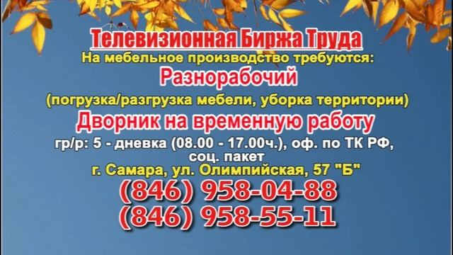 Вакансии и телефоны прямых работодателей в специализированной программе по трудоустройству "Телевизионная Биржа Труда" - г.САМАРА