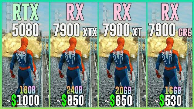 RTX 5080 vs RX 7900 XTX vs RX 7900 XT vs RX 7900 GRE - Test in 25 Games 2025 1080p, 1440p, 2160p, 4k, 2k, dlss 4, dlss 3.7, fsr 4, fsr 3.1, ray tracing, frame generation, native, Multi Frame Generation ⏩GPUs & Amazon US⏪ (Affiliate links) 💥RTX 5080 16GB: https://amzn.to/4jyqKER 💥RX 7900 XTX 24GB: https://amzn.to/3YOZB6q 💥RX 7900 XT 20GB: https://amzn.to/47KIg2P 💥RX 7900 GRE 16GB: https://amzn.to/3TPZAhH ⏩PC Setup⏪ - OS: Windows 11 Professional 64-bit - CPU: Ryzen 7 9800X3D - MB: GIGABYTE X870 AORUS Elite - RAM: Corsair Vengeance RGB 32GB DDR5 - 6400 Mhz CL32 💁♂️ When you buy from my Amazon links, I earn a small commission at no extra cost to you, plus you support the channel thank you.