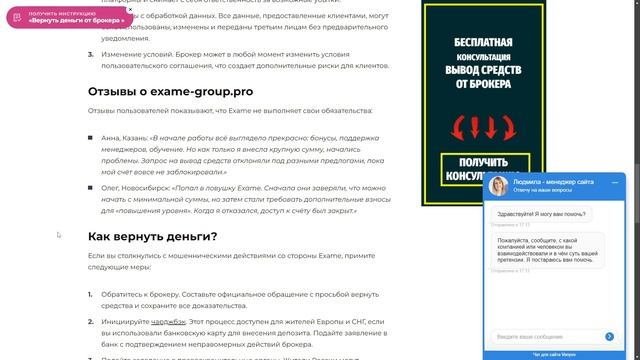 Обзор брокера Exame (exame-group.pro, trade.exame-group.pro), реальные отзывы обманутых трейдеров. Очередной липовый брокер? Как вернуть деньги от Exame? Помогите мне если вы стали жертвой финансовых мошенников: брокеров, казино, подставных криптобирж или купили онлайн-курс, который не оправдал ожиданий, свяжитесь со мной в телеграме https://t.me/DengiVernite