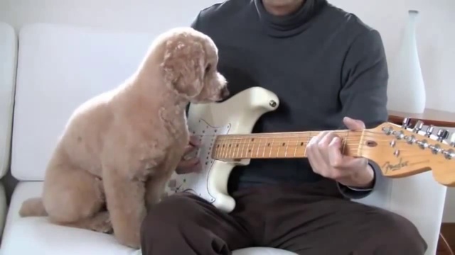 Пудель играет на гитаре. Пёс музыкант