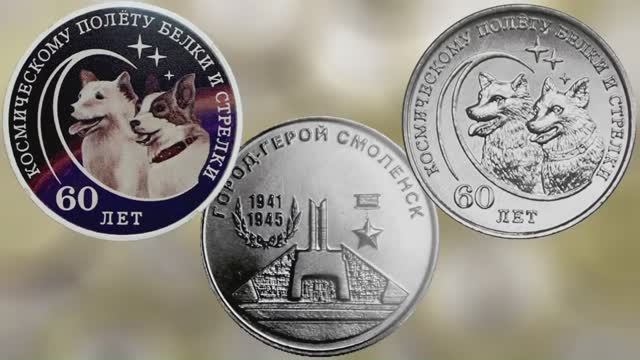 Монеты Приднестровья Белка и стрелка и Город герой Смоленск.