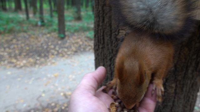 Кормлю молодую незнакомую белку