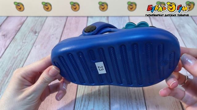 329691 Шлепанцы Pasito пляжные с декоративными динозавриками синие