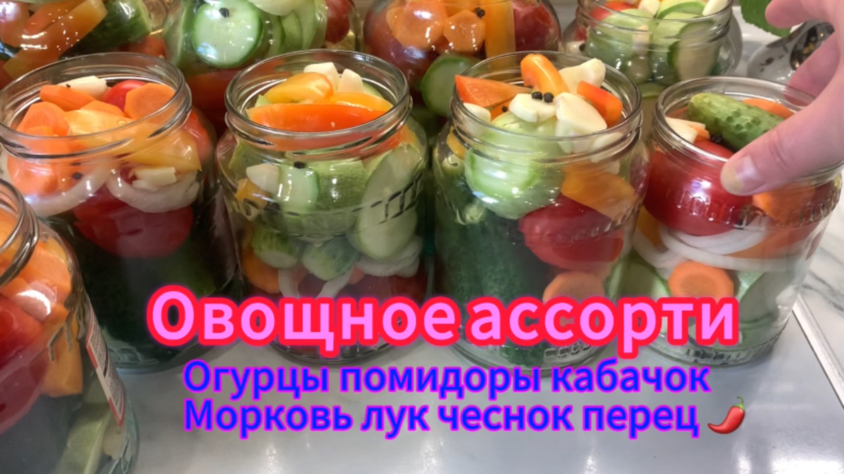 Овощное ассорти ( огурцы помидоры кабачки лук морковь чеснок перец )