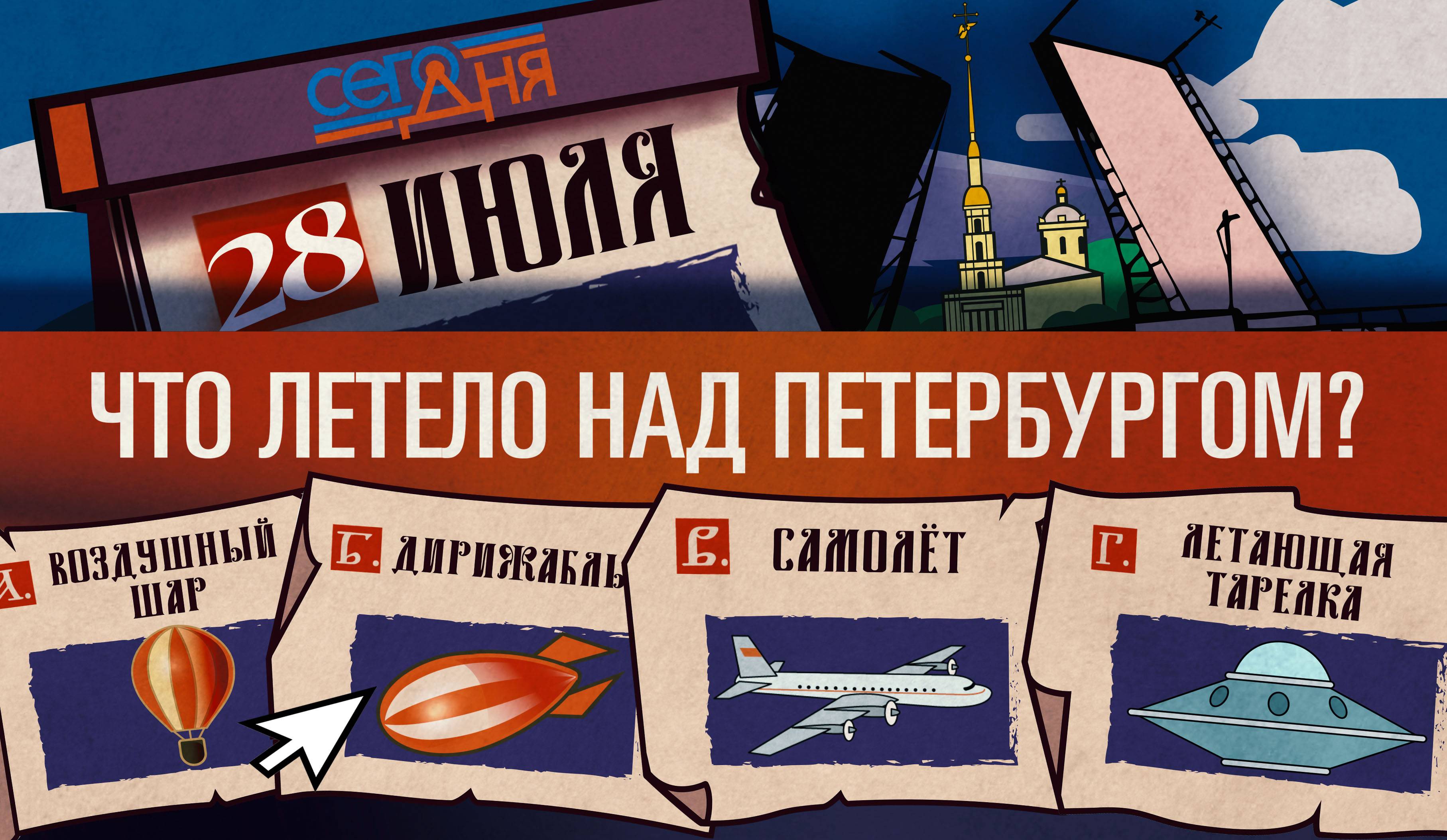 28 июля 1910 года в небе над Петербургом появился невиданный прежде летающий объект… какой именно? Отгадай, что случилось «Сего дня»?