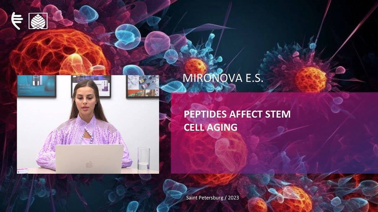 Presentation topic: Peptides affect stem cell aging Speaker: Ekaterina Sergeevna Mironova — candidate of Biological Sciences, Senior Researcher at the Laboratory of Molecular Mechanisms of Aging of the Department of Biogerontology at the St. Petersburg Institute of Bioregulation and Gerontology