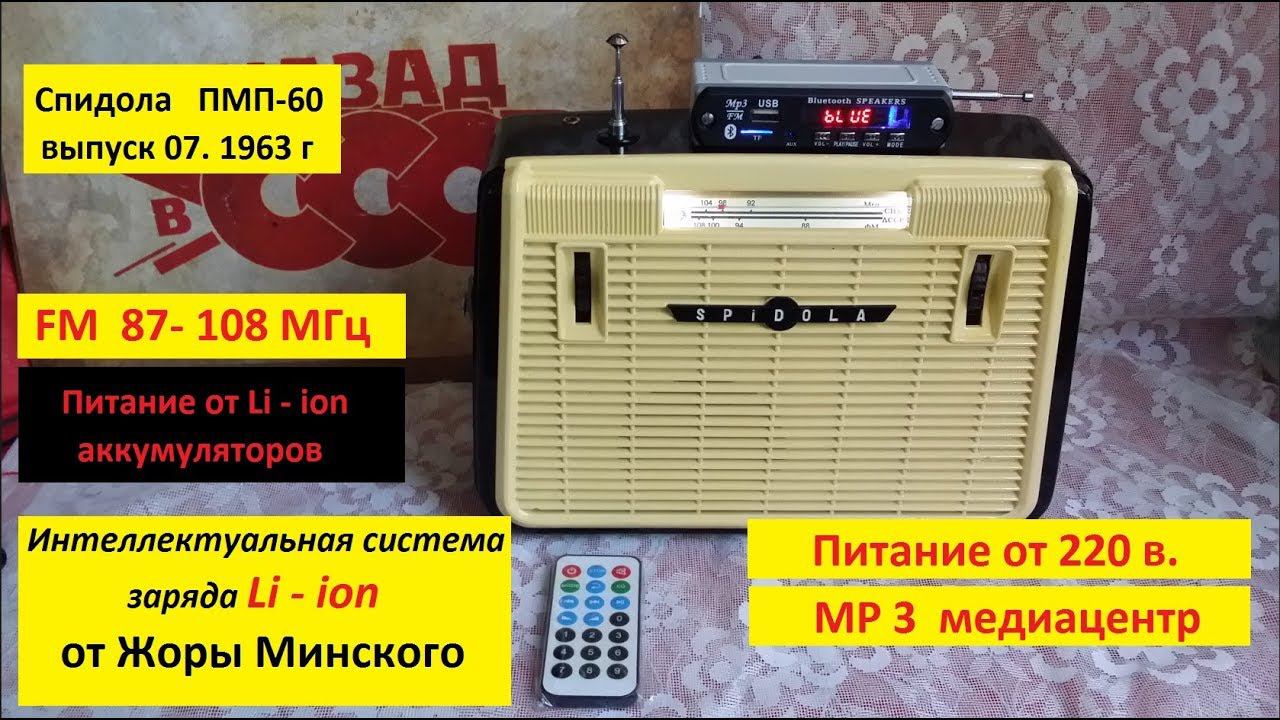 Спидола ПЕРВАЯ !!! ПМП 60 .FM 87 -108Мгц .Li-ion. МР3 медиацентр от Жоры Минского.