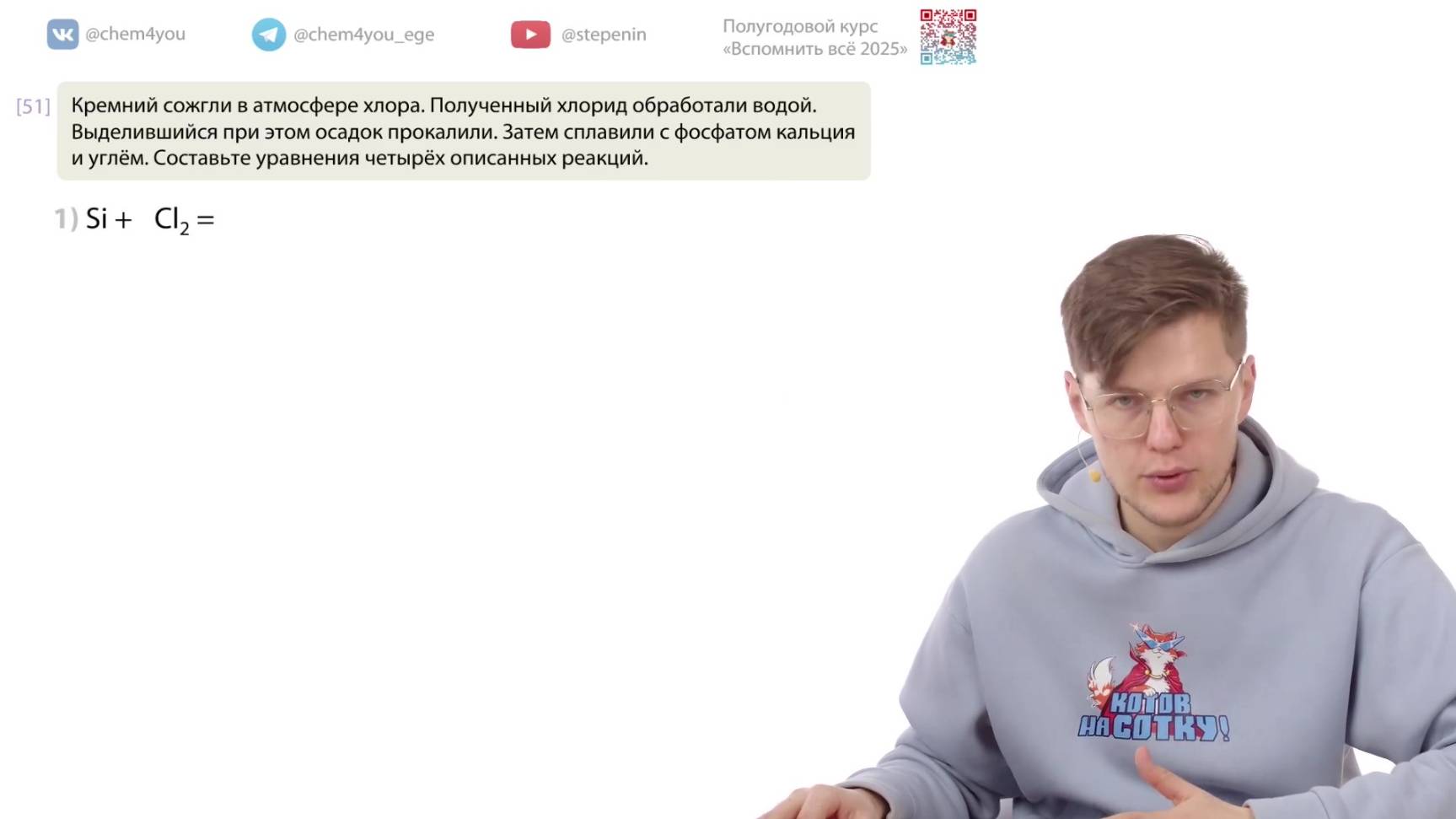 📗 Учебник по органической химии. Углубленный уровень, 10 класс, ФГОС: https://stepenin.ru/tasks/ebook-10 📑 Много тестов для подготовки к ЕГЭ по химии: 1. Задания по неорганике (больше 2000): https://stepenin.ru/tasks/common 2. Вся база заданий (больше 6000): https://stepenin.ru/tasks 💯🧠 Ждем всех на наших курсах подготовки к ЕГЭ: 👉 Курс подготовки к ЕГЭ-2025 по химии для 11 классов: https://stepenin.ru/go/6u3araee 👉 Курс подготовки к ЕГЭ-2026 по химии для 10 классов: https://stepenin.ru/go/H45L7wZZ 📚 Рабочая тетрадь по органической химии: https://stepenin.ru/store/book/book-organic 📚 Книга «Тематические тесты» (500 страниц) : https://stepenin.ru/store/book/tests-bigbook 📚 Книга «40 вариантов к ЕГЭ-2025» (350 страниц): https://stepenin.ru/store/book/sbornik30 📚 Задача 33. Углеводороды: https://stepenin.ru/store/book/hydrocarbons-book ============================= 🧪 Подготовка к ЕГЭ по химии на самые высокие баллы на наших курсах: https://stepenin.ru/go/6u3araee Телефон Андрея Степенина: +7 926 625-73-33 📚 Много полезного образовательного контента на наших площадках: 🐈 ВК химия: https://vk.com/chem4you 🦭 ВК биология: https://vk.com/bio4you ✈️ Химическая тележка 11 класс: https://t.me/chem4you_ege ✈️ Химическая тележка 10 класс: https://t.me/stepenin10 ✈️ Биологическая тележка: https://t.me/bio4you