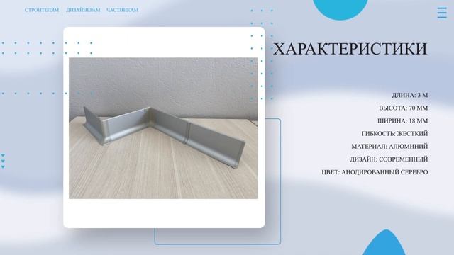 Официальный магазин завода Производителя: https://alyuminievyjplintus.ru/ Купить Плинтус алюминиевый Л-образный анодированное серебро матовый: https://alyuminievyjplintus.ru/item/10911-plintus-alyuminievyjj-l-obraznyjj-7018 Л-образный плинтус из алюминия высотой 60 мм. находит отличное применение при отделке помещений в стиле Premium, Hi-Tech или Минимализм. Так же довольно часто используется в интерьерах автосалонов и бизнес-центров. Плинтус имеет привлекательный дизайн, отличное качество, а в совокупности более привлекательной ценой, по сравнению и зарубежными аналогами. Возможна окраска в различные цвета по RAL. Для плинтусов есть комплектующие из ПВХ и из алюминия. В ролике вы увидите: ▶ Плинтус алюминиевый Л-образный анодированное серебро матовый ▶ Стоимость, скидки и характеристики Тайминг: 00:00 Вступление 00:06 Описание и цена 00:14 Характеристики 00:20 Дополнительная информация (Доставка, Оплата, Скидки, Обмен, Возврат) 00:30 Магазин завода производителя Характеристики: ДЛИНА: 3 М ВЫСОТА: 70 ММ ШИРИНА: 18 ММ ГИБКОСТЬ: ЖЕСТКИЙ МАТЕРИАЛ: АЛЮМИНИЙ ДИЗАЙН: СОВРЕМЕННЫЙ ЦВЕТ: АНОДИРОВАННЫЙ СЕРЕБРО Интересные ролики про плинтус: Плинтус алюминиевый 80х10 черный матовый https://youtu.be/oHVCEHSvDDU?si=-nQi4ewE5WfC9qJC Плинтус алюминиевый 60х11 светлая бронза https://youtu.be/ihlQM3PwBrM?si=VpfARSQvz4sh0oqf Плинтус алюминиевый 60х11 светлая бронза https://youtu.be/rhH4Uc98YVw?si=99Vh79yKL0WjI38Z Подписывайтесь на наш канал, следите за новыми полезными роликами, пишите комментарии и приятного просмотра! Сайт: https://alyuminievyjplintus.ru/ #плинтус #плинтусполоса #алюминиевыйплинтус #напольныйплинтус #плинтуслобразный
