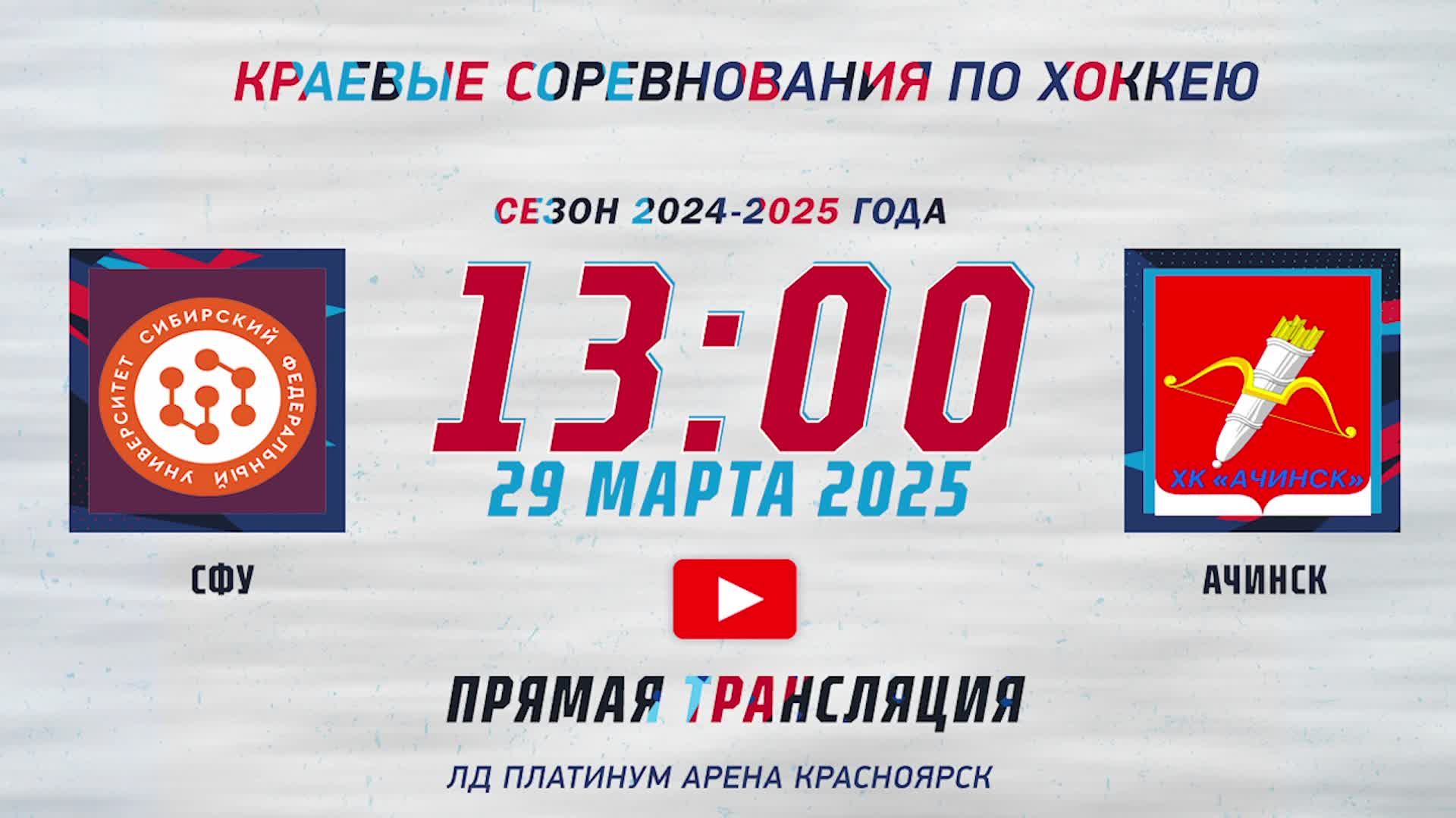 СФУ - АЧИНСК ЧЕМПИОНАТ КРАЯ ЛД ПЛАТИНУМ (29.03.2025 13:00)