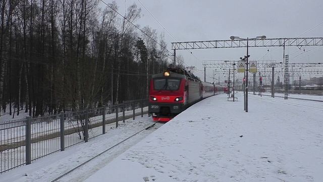 Видео снято 17.01.2023 в 14:19 видеокамерой Panasonic HC-V760 на ст. Железнодорожная. Московская область, Горьковское направление Московской ж. д., 24 км до Курского вокзала. Магистральный двухсистемный скоростной пассажирский электровоз ЭП20-071 "Олимп" (приписан к депо ТЧЭ-6 Москва-Сортировочная-Рязанская) со скорым поездом №063Й/064Й Самара - Санкт-Петербург следует по 3-му гл. пути. ??? Электровоз ЭП20-071 - Электровоз Пассажирский, тип-20, 071 - порядковый номер. Дорога приписки: Московская железная дорога Депо: ТЧЭ-6 Москва-Сортировочная-Рязанская Серия: ЭП20 Завод-изготовитель: ООО "ПК "Новочеркасский электровозостроительный завод", Россия, Ростовская область, г. Новочеркасск Сетевой №: 11801206 Построен: 12.2019 г Категория: Магистральные электровозы Текущее состояние: Эксплуатируется Эксплуатация: С завода поступил депо ТЧЭ-6 Москва-Сортировочная-Рязанская Московской ж. д.