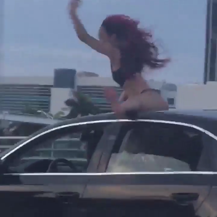 Очевидец заснял на видео, как на крыше автомобиля афроамериканка танцевала некое подобие тверка. #трасса #крыша #тверк