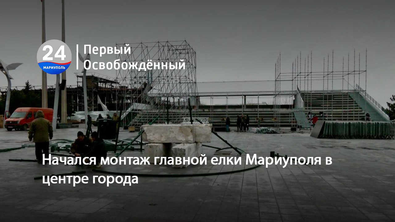 Начался монтаж главной елки Мариуполя в центре города. 19.12.2023