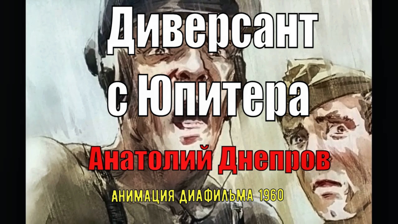 Фильм "Диверсант с Юпитера" сделан по черно-белому диафильму 1960 г., который пересказывал рассказ Анатолия Днепрова 1958 года. Днепро́в (псевдоним; наст. Анато́лий Петро́вич Мицке́вич, 17 ноября 1919, Екатеринослав — 1975, Москва). Много времени служил в ГРУ СССР, переводил переговоры об окончании Второй мировой войны. В его фантастических рассказах и повестях 60-х годов везде звучит антивоенная тема. Наиболее известна повесть "Глиняный бог", рассказы "Суэма", "Крабы идут по острову"...