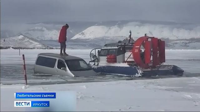 Машина провалилась под лед на Байкале в районе будущей переправы на Ольхон