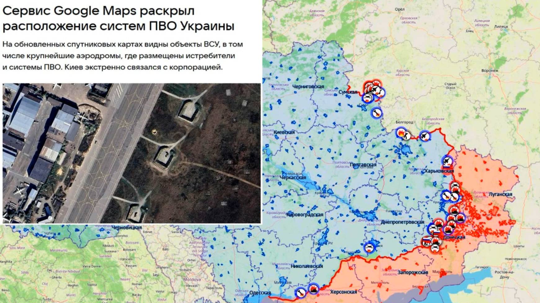 Карта боевых действий. Сервис Google Maps раскрыл расположение систем ПВО Украины