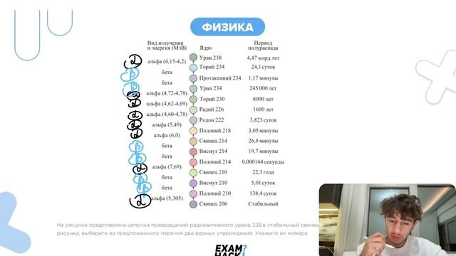 На рисунке представлена цепочка превращений радиоактивного урана 238 в стабильный свинец - №25671