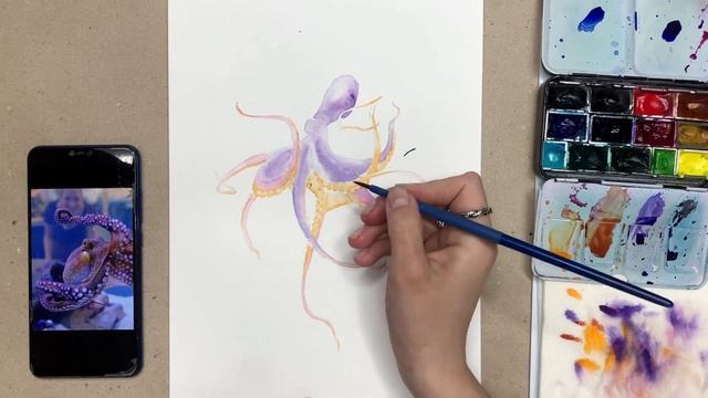 Марафон «Морские обитатели». Рисуем осьминога