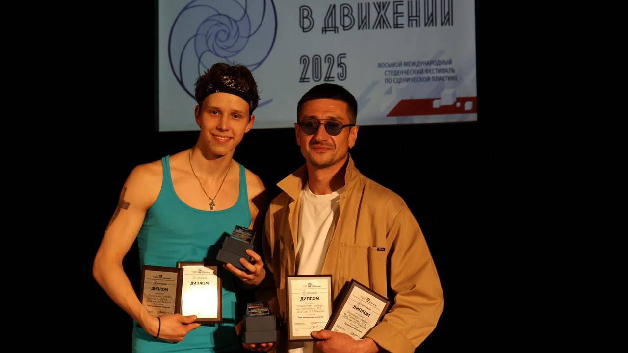 В Театральном институте имени Бориса Щукина прошёл VIII Международный студенческий фестиваль «Театр в движении». На церемонии награждения были объявлены победители! Студент 2 курса «Актерского искусства» Артём Говорун (мастерская заслуженной артистки РФ Я.Е. Колесниченко и Г.А. Ковалёва) победил с номером «Нечаянная любовь» сразу в двух номинациях: Лучший исполнитель фестиваля и Приз зрительских симпатий! Мы поздравляем Артёма и преподавателя по сценическому движению Руслана Зуфяровича Насибулина с признанием жюри такого престижного конкурса! Спасибо ТИ им Б.Щукина за фестиваль, Филатовцы рады принимать участие в таких мероприятиях и творить!
