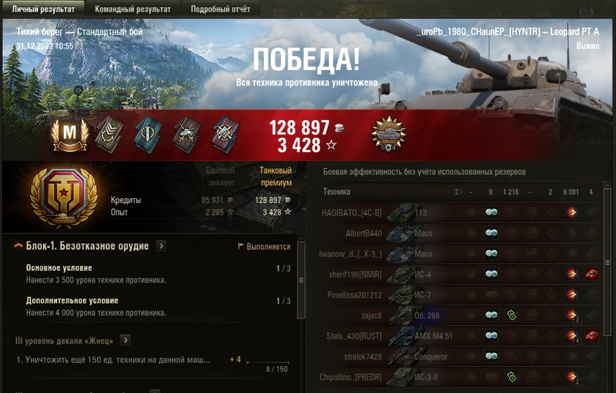 ТИХИЙ БЕРЕГ МАСТЕР на Leopard Prototyp A ОПЫТ: 1523 СУММАРНЫЙ УРОН: 7297 медаль РАЗВЕДЧИК