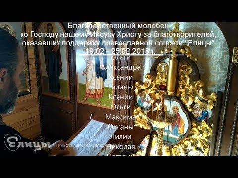 Молебен о здравии и спасении благотворителей благосотворивших с 19 по 25 февраля 2018 года