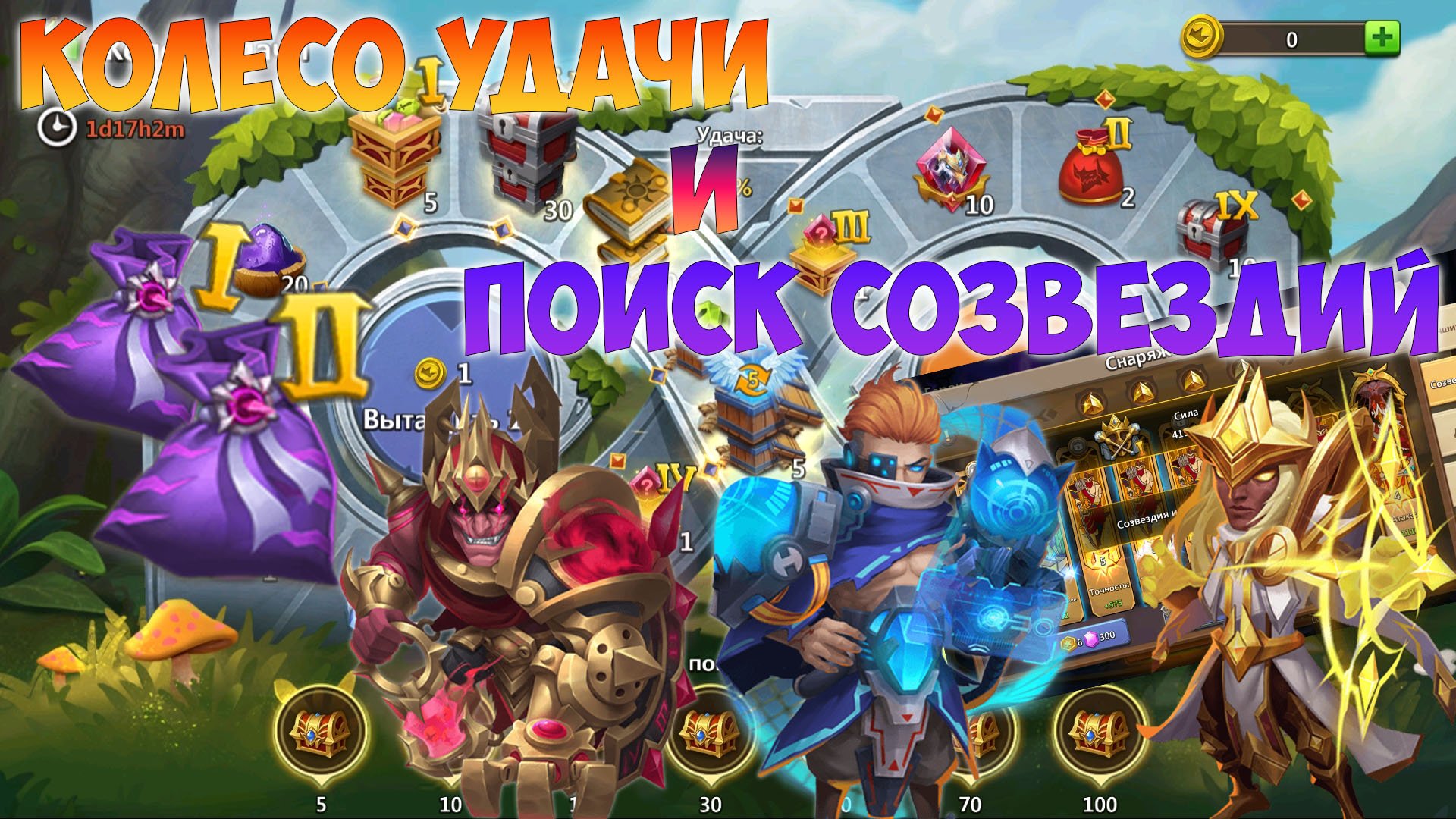 50 000 НА СОЗВЕЗДИЯ + 100 МОНЕТ НА КОЛЕСО УДАЧИ, ПЛЮШКИ ЖДУТ, Битва замков, Castle Clash
