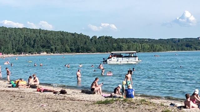 Обское море: маленький репортаж к с пляжей Академгородка. Много маленьких кусочков коры, нанесло
