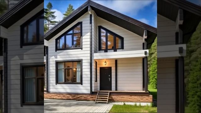 Дом с мансардой белый фасад с чёрными акцентами