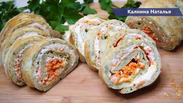 Рулет из кабачков с морковью, сыром и чесноком. Это отличная сезонная закуска. Всегда ее готовлю в сезон кабачков, когда их много и не знаешь куда девать. Готовится быстро, просто, из минимального количества бюджетных продуктов. Начинка получается пикантной и очень нежной, все ингредиенты замечательно сочетаются. Рецепт: Кабачки -500гр. Яйцо -3 шт. Мука – 150гр. Зелень – по вкусу Соль -1/2ч.л. Черный перец – по вкусу Для начинки: Плавленые сырки – 200гр. Морковь по-корейски -100-150гр. Чеснок -3-4зуб Сметана -3-4ст.л. Соль – по вкусу Я в других соц сетях: Я в Дзене https://zen.yandex.ru/kalnina Я в телеграмме https://t.me/kalninanataliagotovim Я ВКонтакте: https://vk.com/club108702356 Я в Одноклассниках: https://ok.ru/kalnina Я в Пульсе https://pulse.mail.ru/source/6299102152560298300/ Я на youtube: https://www.youtube.com/channel/UCh3yCLRgNaVrgSB6rCdQV_g Я на Rutube: https://rutube.ru/channel/23921262/ **************************************** Радуйте своих любимых и близких. Приятного аппетита!