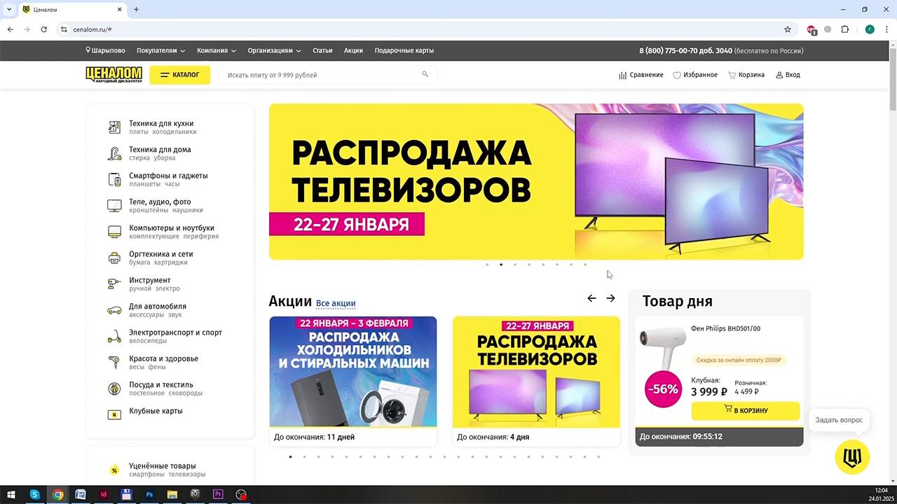 В «Ценаломе» началась большая распродажа бытовой техники. Выбирайте то, что давно хотели купить и приобретайте товары по сниженным ценам! Скидки на холодильники и стиральные машины действуют до 3 февраля!