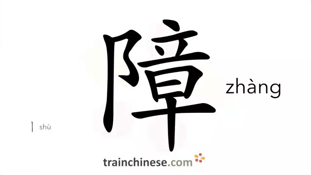 障 (zhàng) obstacle; barrier; baffle; longstop; repellent; to block, occlude