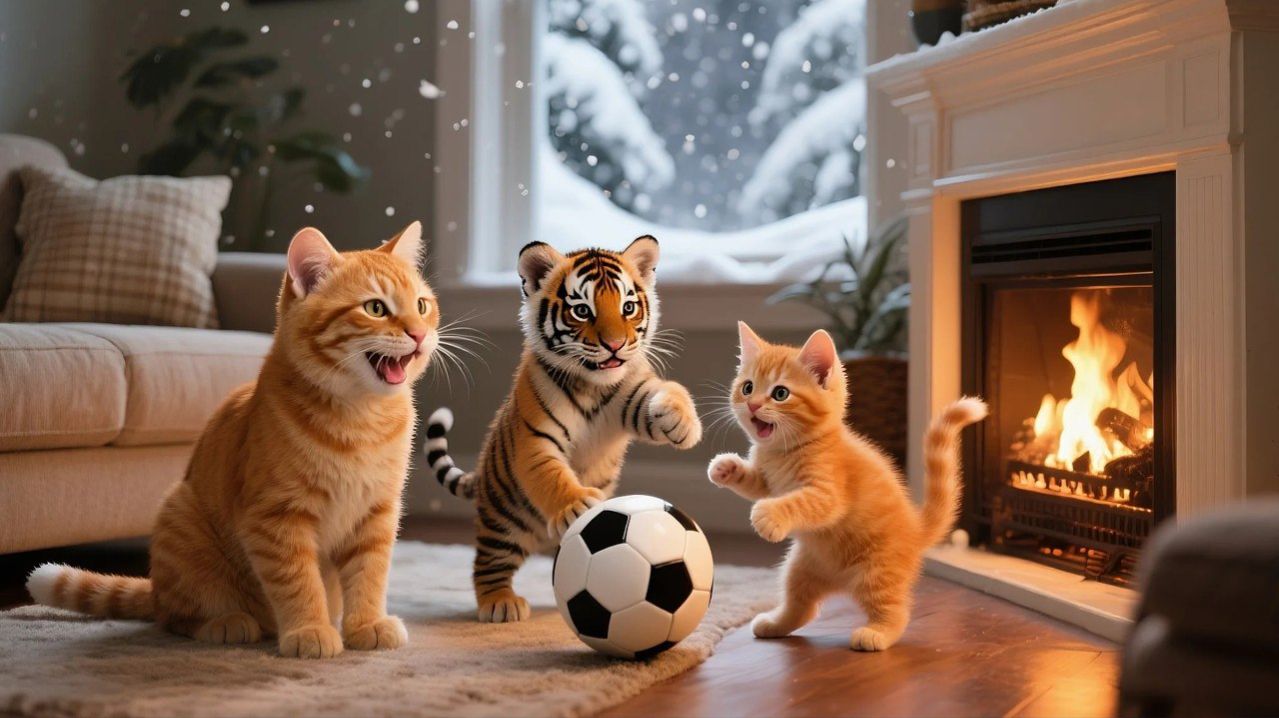 Рыжик и мама-кошка забирают домой раненого тигра, лечат его, готовят ребрышки и играют в футбол!