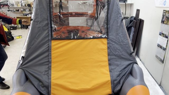 Тент КОМБИ на лодку Skat 390Fi оранжево-серый