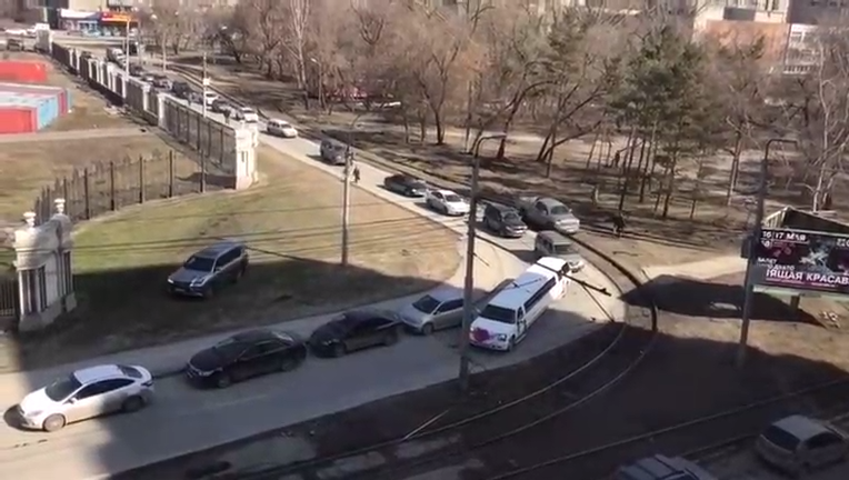 Лимузин с трудом повернул из-за припаркованных машин. В целом маневр занял около 10 минут по словам очевидцев. #затор #парковка #лимузин