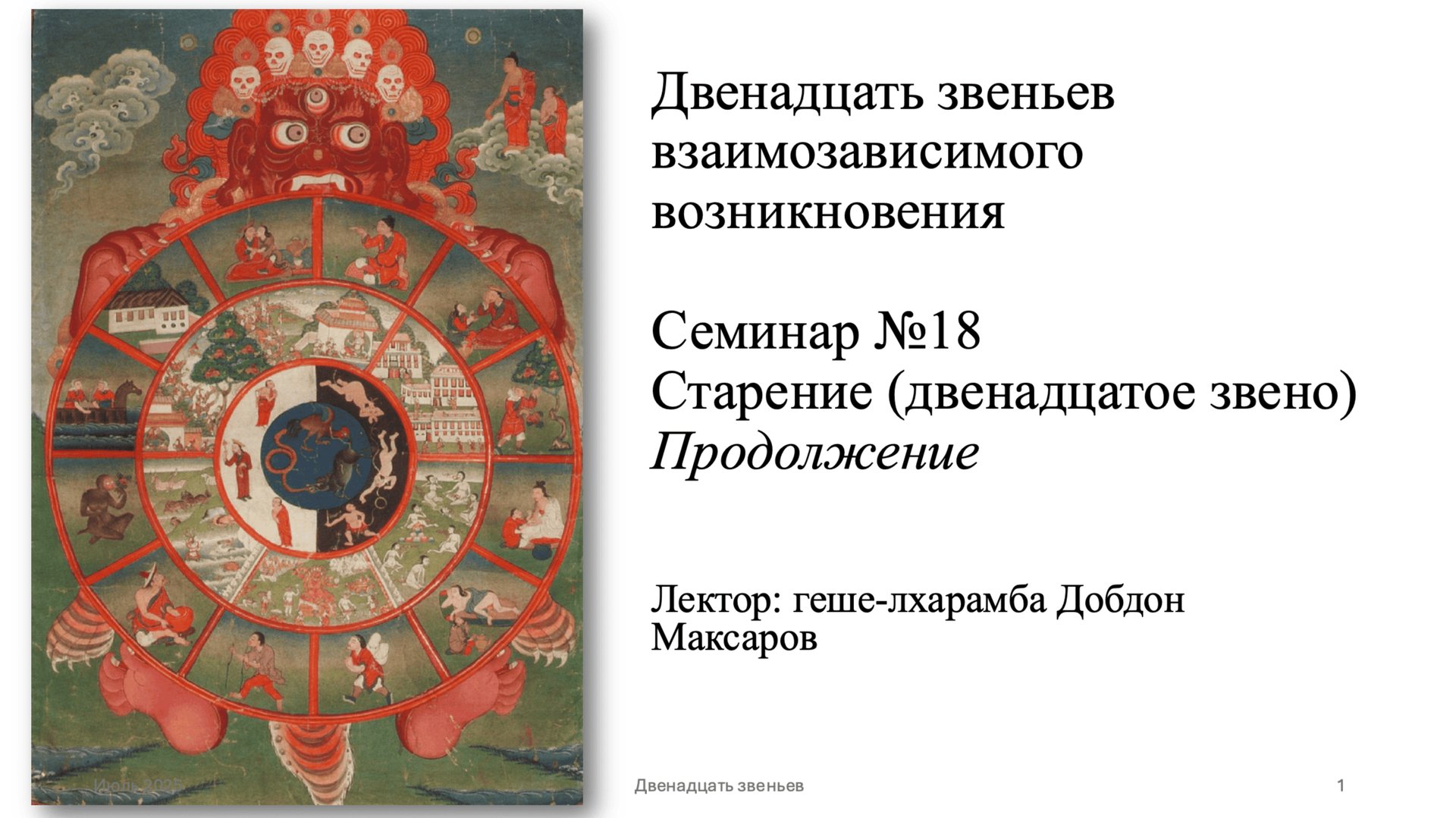 Семинар №18 из серии семинарских занятий "12 звеньев взимозависимого возникновения" Тема: Старение (продолжение) (звено №12) Лектор: геше-лхарамба Добдон Максаров