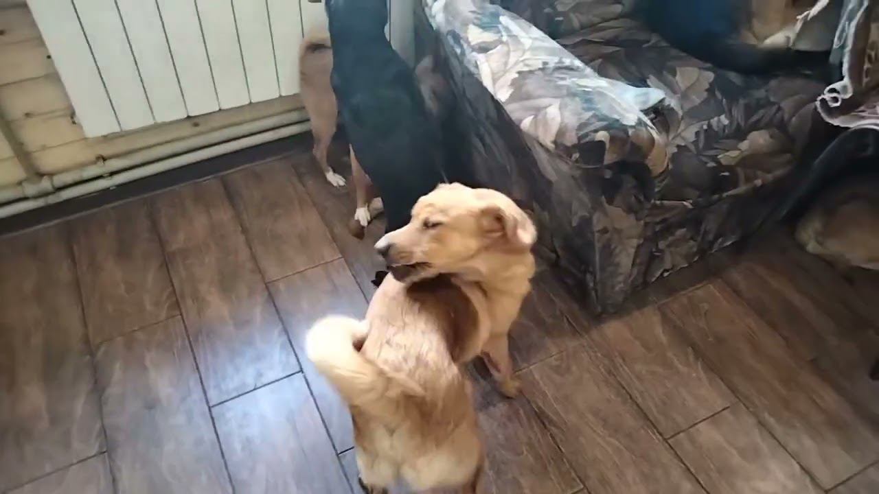 Щенки с радостью играют в доме