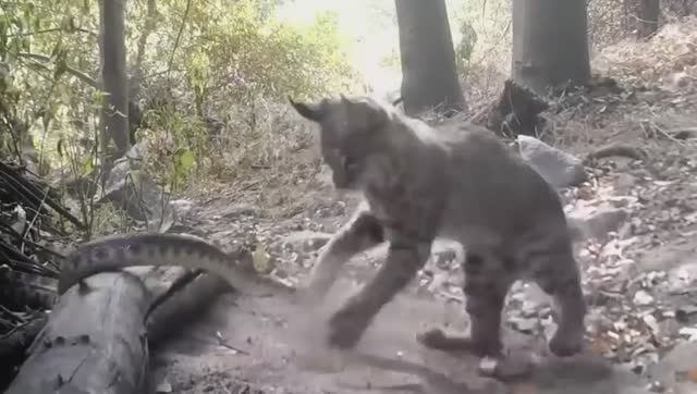 Рысь убивает Гремучую змею во время боя