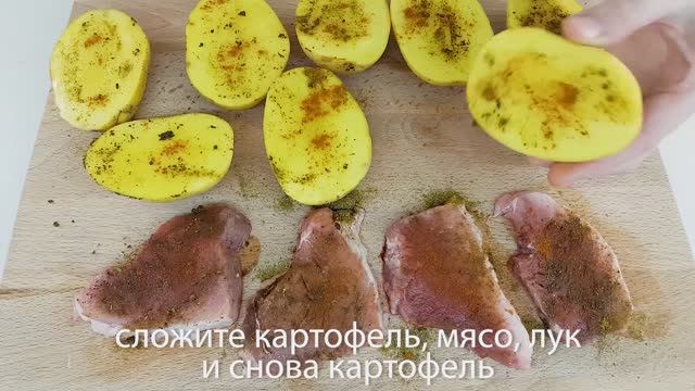 Ингредиенты: 4 крупные картофелины; 4 ломтика свинины или курицы; 1 луковица; Соль, перец - паприка, базилик, перец черный - все по вкусу; Приятного аппетита! Спасибо что, смотрите👀 наши ролики! Если Вам не сложно, подпишитесь🔊 на наш канал, нам будет приятно! Если Вам понравился рецепт, поставьте 💘,сделайте репост;) Для развития канала,поддержите нас пожалуйста🙏 небольшой суммой в размере 10 руб.💲. Вам мелочь, а нам приятно.🌹