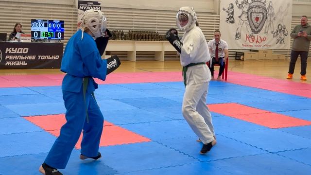 2.03.2025 в Пскове прошли Межрегиональные соревнования по кудо «Шестая рота», посвященные героям-десантникам 6 роты. Бой в категории девушки 200+ ед. 14-15 лет. В синем Александра Коршикова (г. Псков, СК «Скала»), в белом Элиза Новожилова (г. Москва, СК «Прайд»).