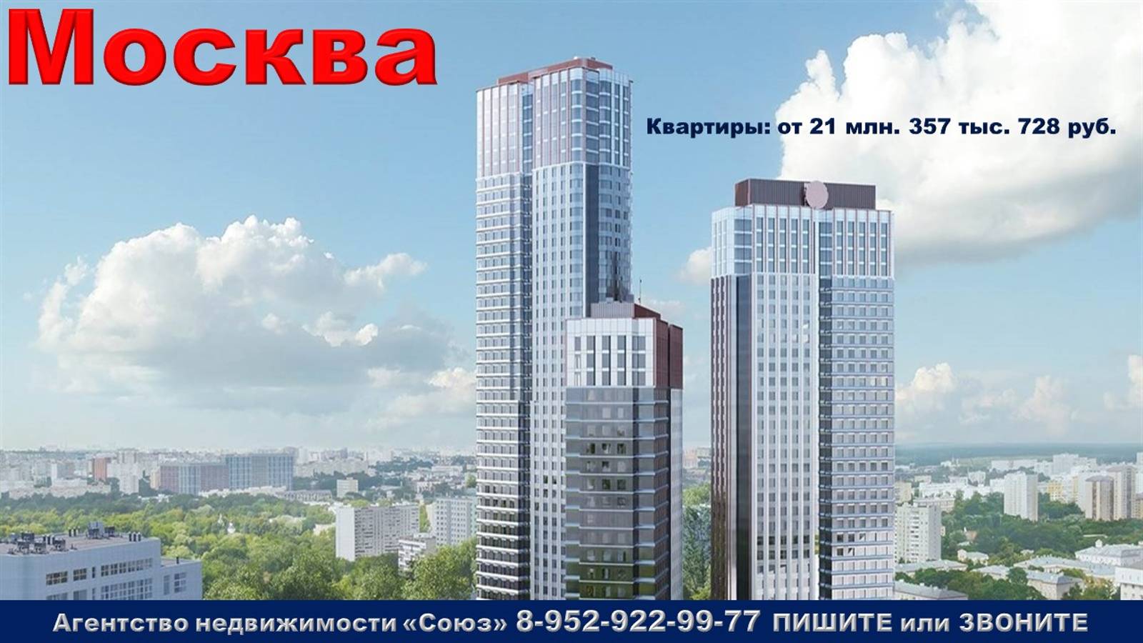 Подпишитесь на нас. Благодарим !!! https://www.youtube.com/@nedvigimoct/videos - мы на Ютубе https://dzen.ru/nedvigimoct?tab=longs&utm_referrer=dzen.ru - мы на Дзене https://rutube.ru/channel/27083000/videos/ - мы на Рутубе https://vk.com/club223108371 - мы в ВК https://ok.ru/lyubayan - мы в Ок Агентство недвижимости «СОЮЗ» Покупайте: квартиру в Москве (Moscow). СВАО, район Ростокино, ул Вильгельма Пика, м. Ботанический сад (16 минут пешком) Агент по новостройкам: 89529229977 (WhatsApp) Цены на квартиры точно такие же как и у застройщика. Квартиры продаются БЕЗ РИЭЛТОРСКОЙ КОМИССИИ !!!. 1к. квартиры: от 21 млн. 357 тыс. 728 руб. Ежемесячный платеж: 102 312 руб. при ставке 6% Площадь общая: 35,8 м2 - 61,9 м2 2к. квартиры: от 30 млн. 220 тыс. 529 руб. Ежемесячный платеж: 144 769 руб. при ставке 6% Площадь общая: 59,4 м2 - 94,7 м2 3к. квартиры: от 61 млн. 600 тыс. 110 руб. Ежемесячный платеж: 295 090 руб. при ставке 6% Площадь общая: 91,3 м2 - 106,4 м2 4к. квартиры: от 120 млн. 44 тыс. 818 руб. Ежемесячный платеж: 575 064 руб. при ставке 6% Площадь общая: 132,1 м2 - 173,8 м2 5к. квартиры: от 130 млн. 517 тыс. 123 руб. Ежемесячный платеж: 625 230 руб. при ставке 6% Площадь общая: 186,3 м2 Срок сдачи: 2 кв. 2024 Срок выдачи ключей: 4 кв. 2024 Договор: ДДУ Тип дома: кирпично-монолитный Тип отделки: чистовая, подготовка под чистовую отделку. Парковка: подземная Потолки: 3.08 м. Преимущества:Транспортная доступность. Большой выбор планировочных решений. Близкое расположение к историческому центру города. Школы и детские сады поблизости. Зеленая зона ожидания и зона ресепшен. Развитая инфраструктура. Описание комплекса:Если в жизни встречается нечто необычное и захватывающее, мы восклицаем: «Это же как в кино!» Именно так можно описать данный жилой комплекс бизнес-класса. Он вознесся в самом киношном уголке столицы, на улице Вильгельма Пика, напротив входа в парковую зону ВДНХ. С одной стороны территория комплекса граничит со знаменитой киностудией имени Горького, с другой — со ВГИКом. Ходить по тем самым улицам, по которым спешили на студию известные режиссеры и актеры. Начинать каждый свой день в стиле большинства классических фильмов — с монумента «Рабочий и колхозница». Кататься на велосипеде среди фонтанов и павильонов ВДНХ, наслаждаясь смешением двух жанров — советского мюзикла и современных фильмов. Из этих сцен складывается жизнь в ЖК. Водители оценят близость ЖК к одной из крупнейших транспортных артерий Москвы — проспекту Мира. Поездка до Третьего кольца занимает около 10 минут (6 км), до Садового — примерно 12 минут (8,5 км). — Дорога в обратном направлении до МКАД (Ярославское шоссе) займет около 15 минут. — Северо-Восточная Хорда, строительство которой заканчивается в соседнем районе, позволит максимально быстро добраться до Ленинградского шоссе, шоссе Энтузиастов и других районов Москвы. В пешей доступности находится сразу две станции метро: — «ВДНХ» и «Ботанический сад», а также одноименная станция МЦК. На нижних этажах в отделке преобладает клинкерный кирпич и современные композитные материалы, создающие оригинальный стиль входных групп. 29-, 38- и 48-этажные башни объединены центральным вестибюлем. Фасады комплекса решены в современном стиле, однако их построение и логическая взаимосвязь имеют классический характер. Визуально каждый корпус разделяется на две отдельные секции. Создается впечатление двух башен, соединенных переходом, вместо скучной длинной пластины единого корпуса. Такой прием очень облегчает конструкцию — кажется, что корп