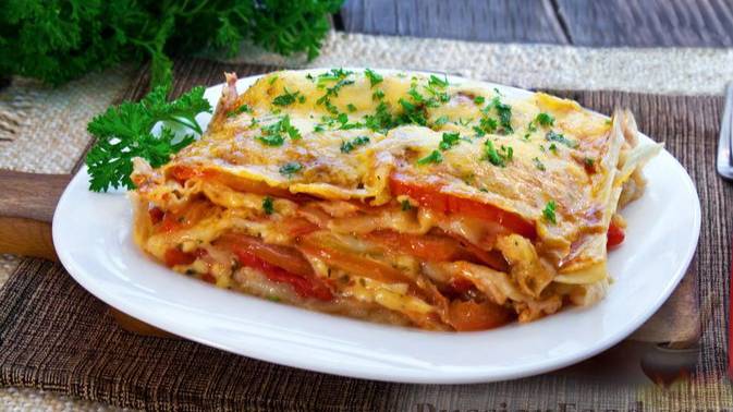 Очень упрощенный вариант лазаньи - из лаваша и овощей. Такая лазанья готовится намного проще и быстрее, лаваш очень неплохо заменяет листы для лазаньи. А вместо традиционных соусов используются мелко нарезанные консервированные помидоры в собственном соку. Овощная лазанья готовится без фарша, но большое количество сыра и свежих помидоров делает её сытной и вкусной. #Лазанья #ОвощнаяЗапеканка #ЛазаньяСОвощами