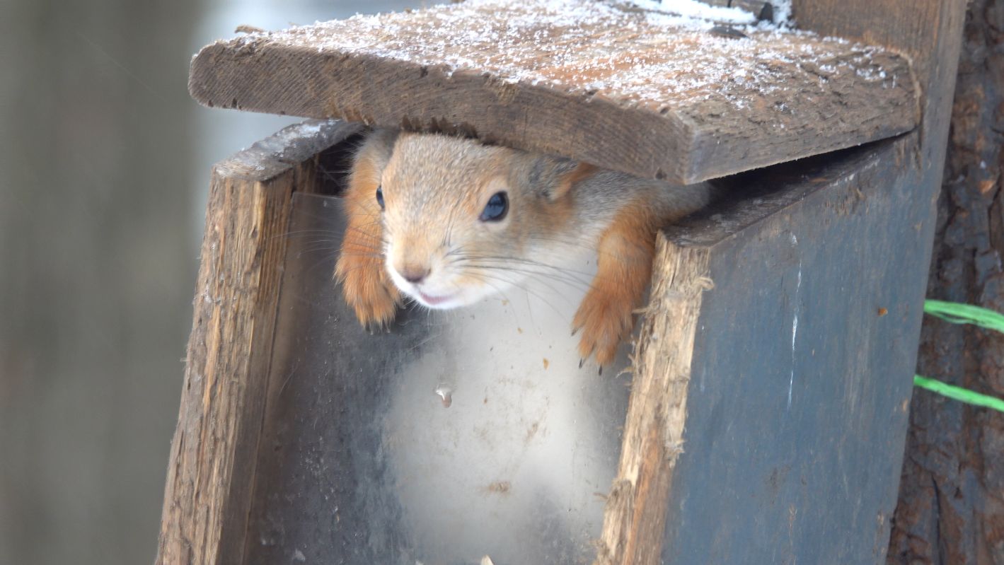 Белка в кормушке. Зарисовка