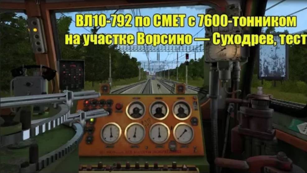 Trainz: ВЛ10-792 едет по СМЕТ на участке Ворсино — Суходрев (7600 тонн)